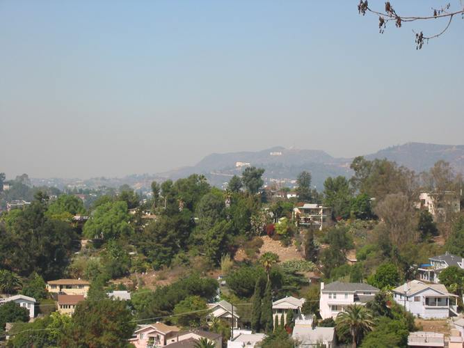 4. gazing out through the smog from lucas's balcony you can the hollywood sign. see?